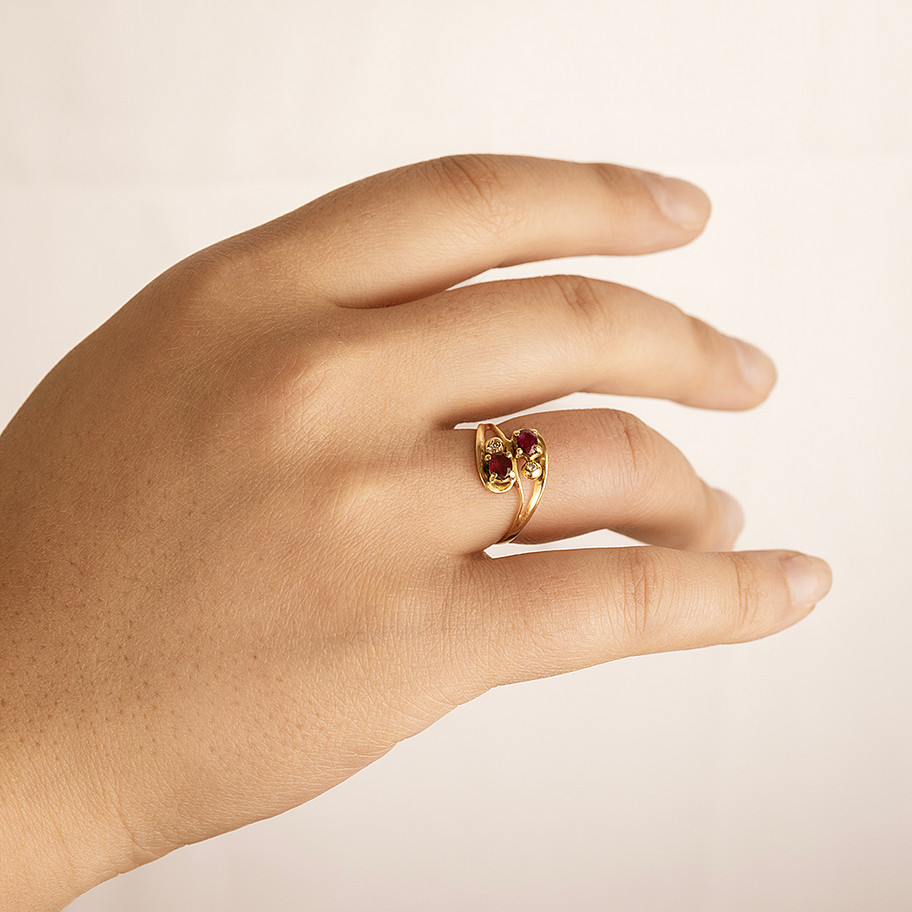 YELLOW GOLD CONTRARIE RING WITH RUBIES