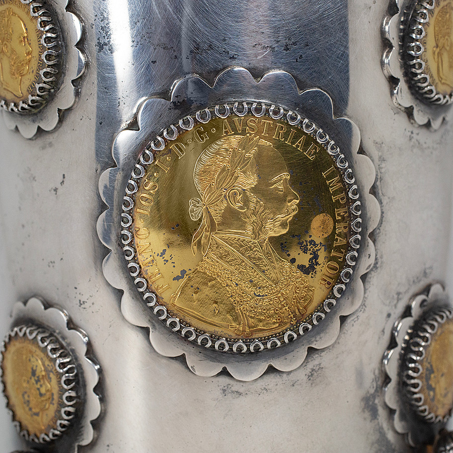 BOCCALE IN ARGENTO CON MONETE IN ORO